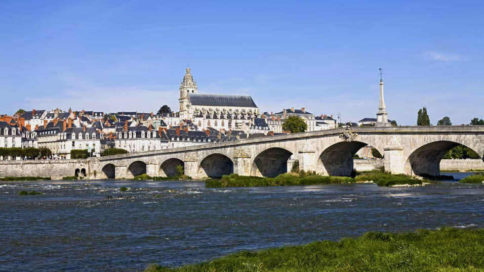 Looking over the River Loire to the town of Blois with its impressive châteaux