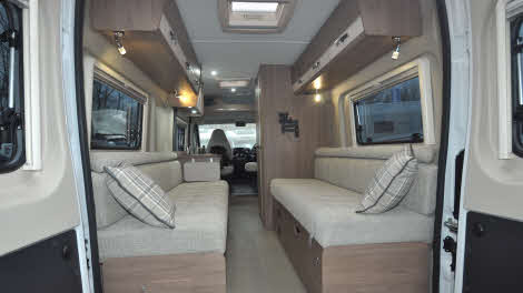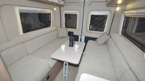 If you want additional on-site seating for a couple of guests, you can also swivel both cab seats – although there’s a step down to floor level behind the cab.