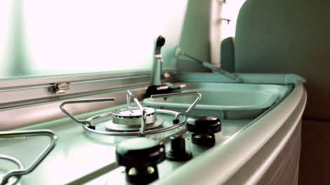 The washing-up bowl sums up the quality of this camper – it’s not cheap plastic. Ditto the glass cover for the two-ring hob and sink combination unit. Storage is one aspect where California’s designers haven’t quite got it right. Apart from in the 42-litre top-loading fridge, there’s nowhere to stow a bottle of wine upright, for example.