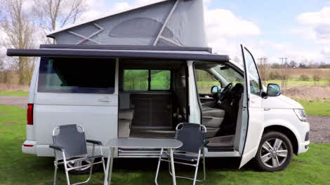 There are 12 great colours available. This is the Oryx White, one of two pearlescent finishes (the other is black, probably not ideal for a camper) that add an extra £606 to the asking price. Other options fitted here are the awning (£396), front and rear parking sensors (£420), Light and Vision Pack (£228), privacy glass (£288) and removable towbar (£570).