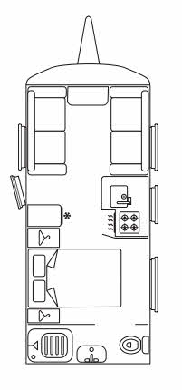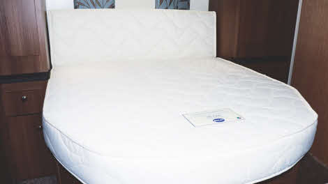 You can fall into any corner you like and enjoy the very-good-quality built-in JVC stereo, which gives you the full works – DAB radio, CD, USB, aux-in and Bluetooth. Or if you’d rather watch telly, all the necessary socketry is on the wall by the entrance door – it’s a case of fit your own bracket, though. There are two mains sockets right at the front of the lounge, so you can always relocate the gogglebox to the front chest to watch a DVD or Blu-ray. There’s another pair of mains sockets in the kitchen, and two more in the bedroom. Outside, there’s yet another one, plus a satellite connection inlet and a gas barbecue point.