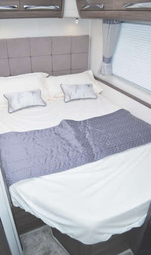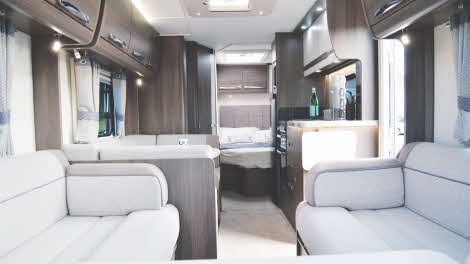 For example, flicking one switch just inside the entrance door brings on a service light on the offside exterior wall and one that shines into the front gas locker. Open the wardrobe and a bright courtesy lamp illuminates. As well as the usual mood lighting emerging from above the roof lockers, there are two pinhole night lights down at floor level. Brilliant – quite literally.