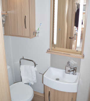 You’re well looked after here, both in terms of visual appeal and practicality. The heated towel rail is a touch of luxury – and it does get proper hot, very quickly, which is great for those who don’t put your tourers into winter hibernation. The big, backlit mirror provides another hint of glamour. With a window and a sunroof, it always feels light and airy in here.