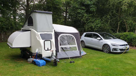 You do have the option of an awning – an inflatable Kampa – which takes minutes to erect and makes a big difference to the amount of living space.