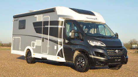 Some useful advice for those of you buying a new motorhome: look out for the word ‘edition’. Generally, whether preceded by ‘Special’, ‘Limited’, ‘Anniversary’ or, as is the case here, numerals, it means that you’re going to get a whole lot more for your money. This Sunlight is a great example. From the Dethleffs stable, it is a celebratory anniversary version of one of its best-sellers. The T69L is one of just two low-profile coachbuilts getting the treatment, and it all starts off with a lot of black – for the front grille, awning, bike rack, cab – which gives this special edition a striking look.
