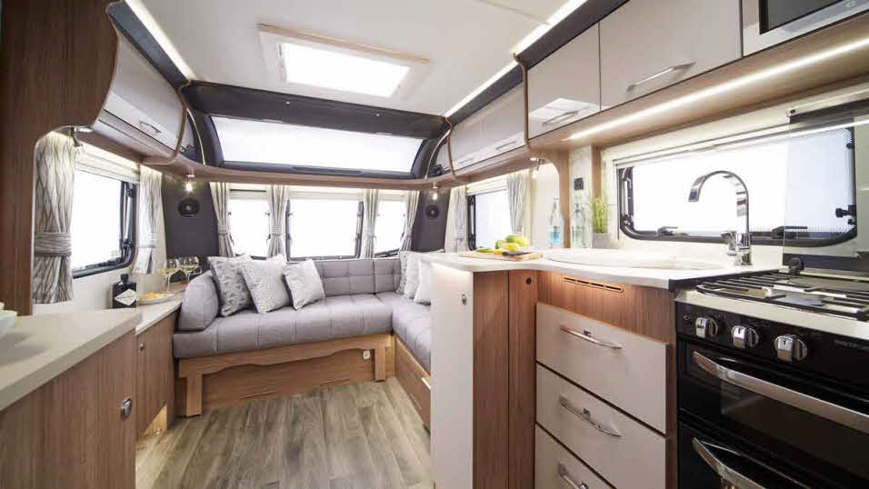 - Layout: central kitchen / central washroom / fixed rear island transverse bed