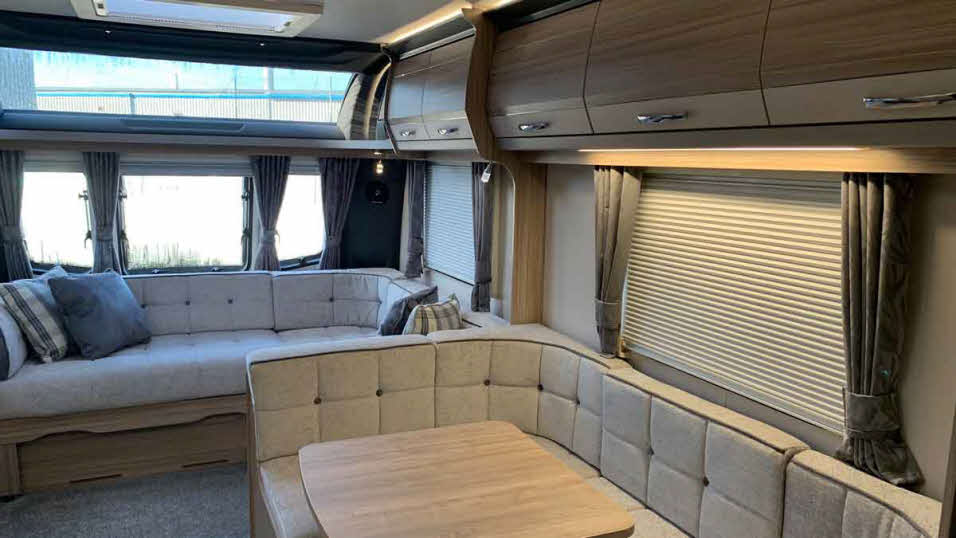 - Bed sizes: front singles, nearside 1.98m x 0.77m (6′ 6″ x 2′ 6″) and offside 1.90m x 0.705 (6′ 2″ x 2′ 3″) which can be made into a double 1.98m x 1.37m (6′ 6″ x 4′ 6″). Rear fixed double 1.87m x 1.37m (6′ 2″ x 4′ 6″)