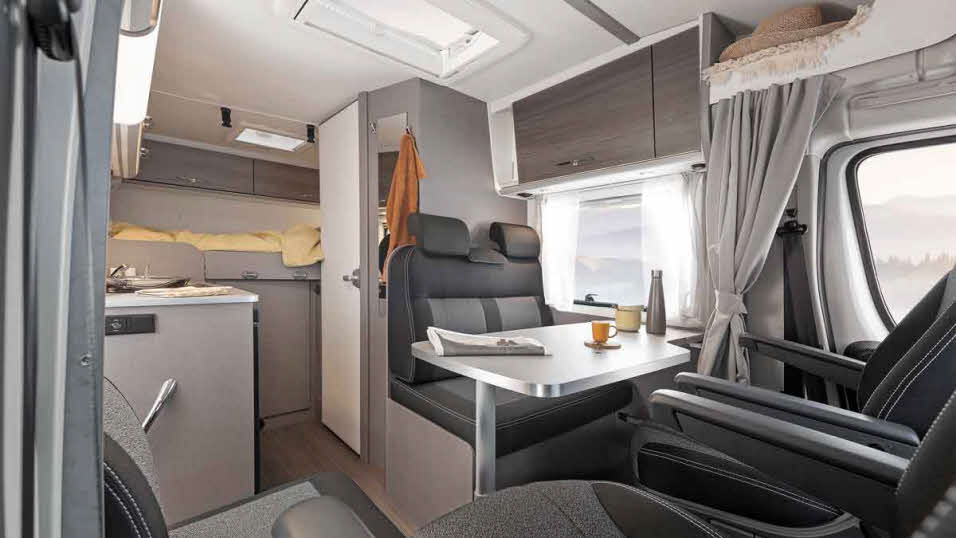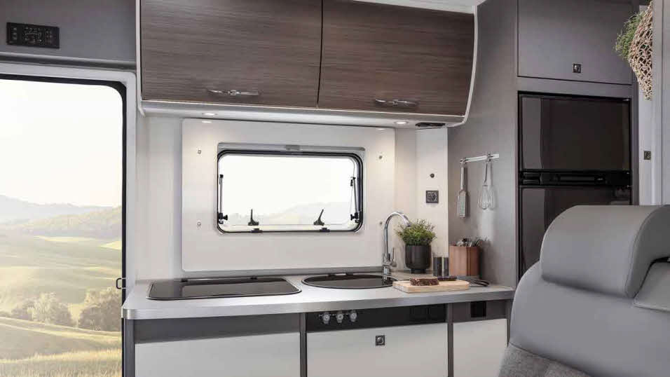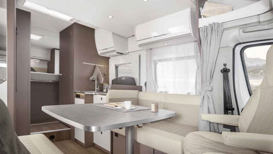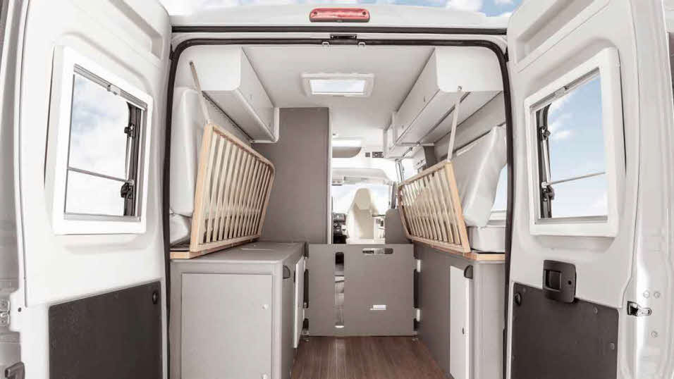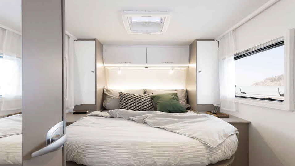 - Layout: Central kitchen / central washroom / fixed rear island bed / drop down front double bed