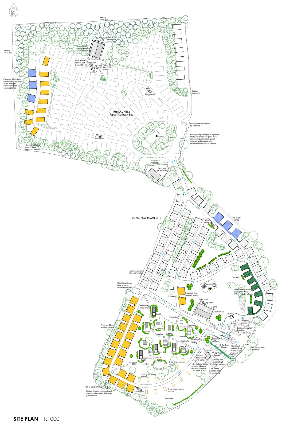 • Re-designed roads and pitch layouts.